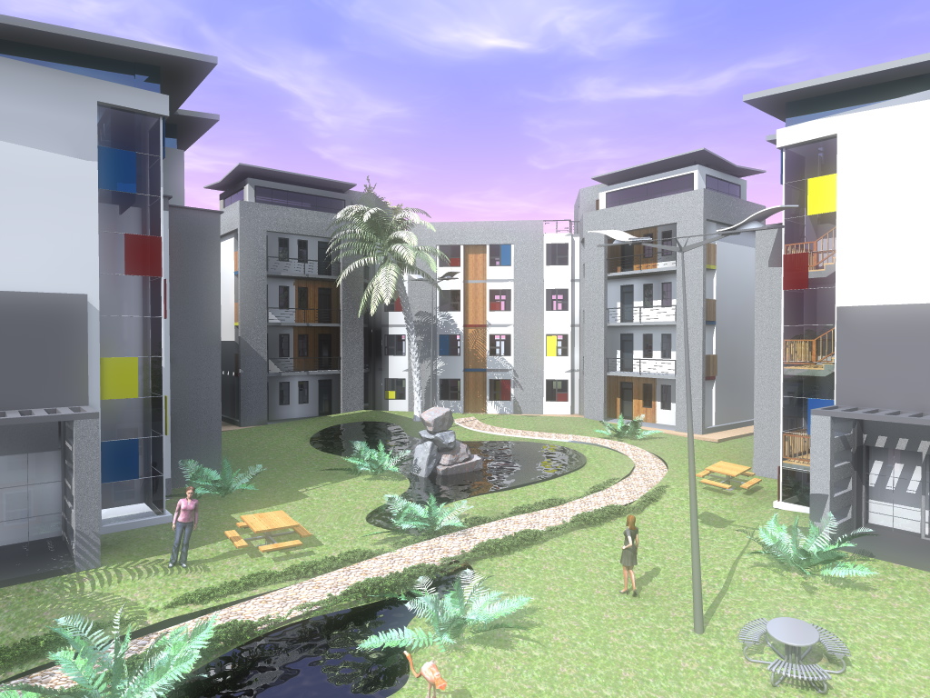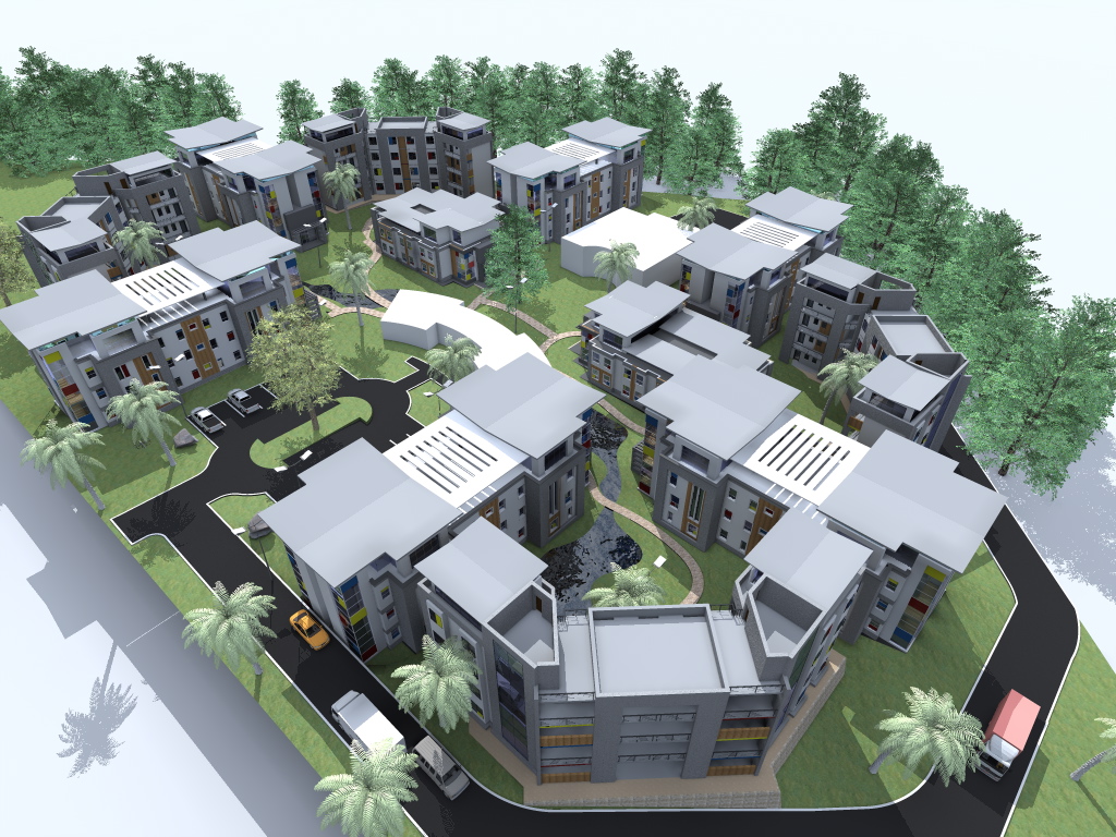The project was to be implemented in 3 Phases. At full completion the development would have 17 accommodation buildings in 3 typologies with shared and single rooms, lettable / free parking facilities, Dining/ Multipurpose hall, retail and gymnasium and staff housing.
